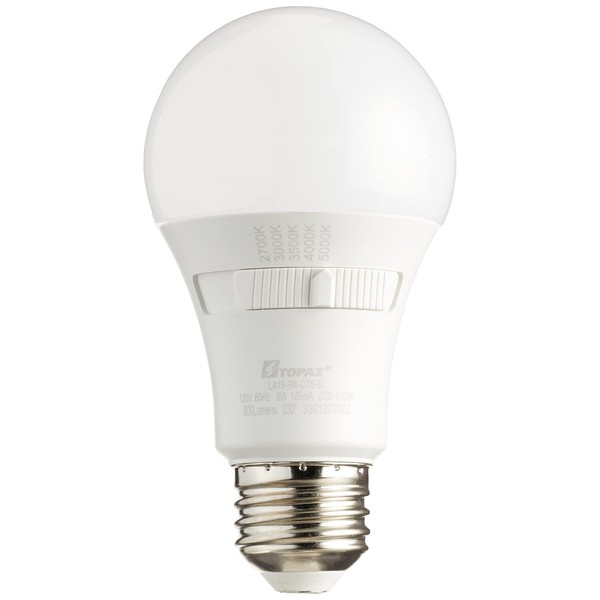 Topaz LED Light Bulb, A19, 9W, CCT Selectable, 5000K, 80CRI Dimmable