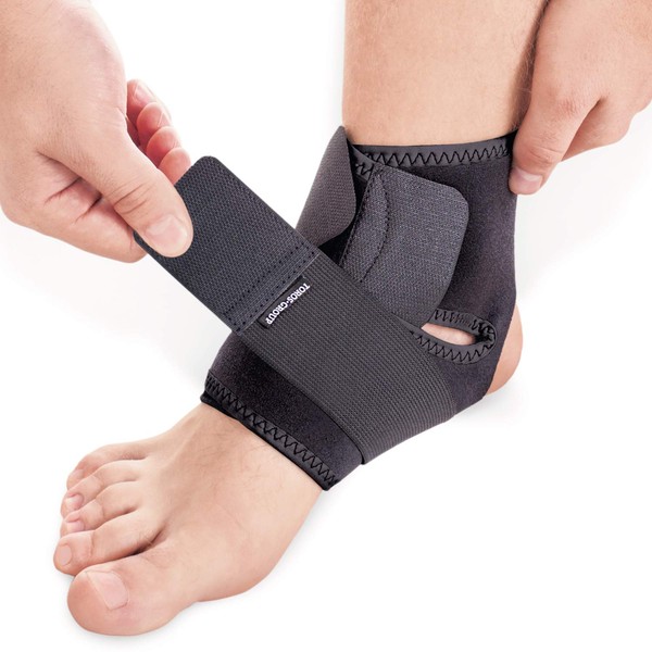 TOROS GROUP MANUFACTURE Ankle Brace with Compression Wrap Support for Foot Support Bandage Neoprene Black Large