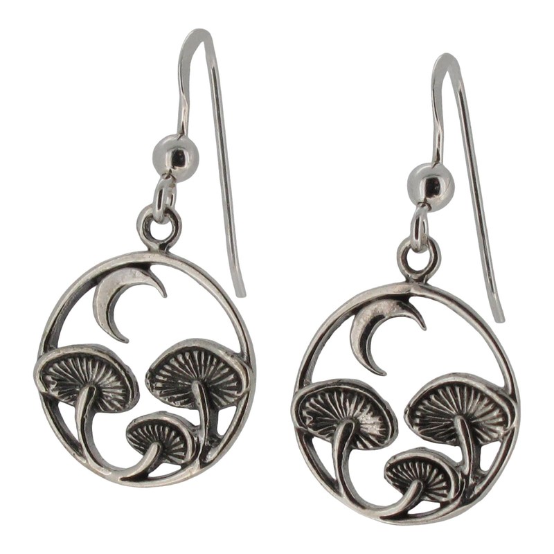 Touch Jewellery 925 Sterling Silver Mushrooms and Moon Drop Earrings