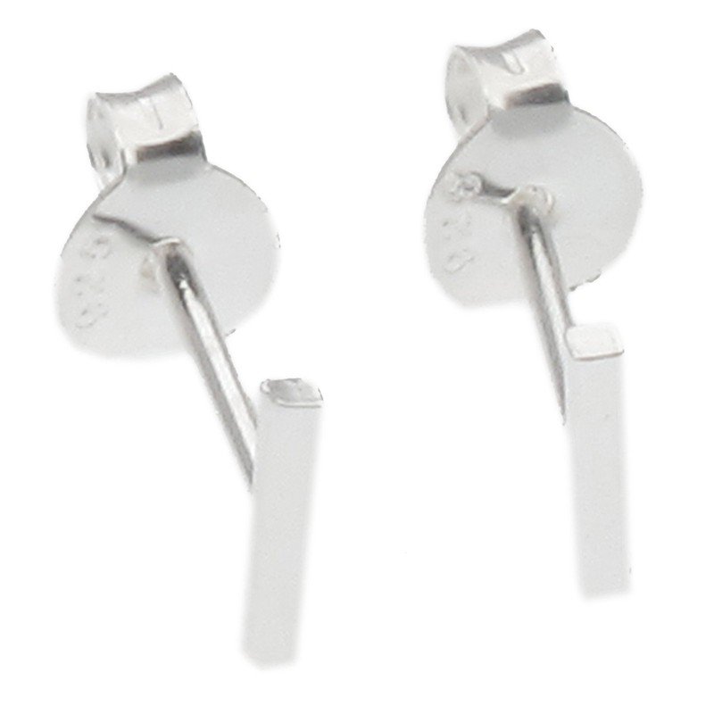 Sterling silver rectangular bar contemporary design stud earring. The bar measures 6mm x 1mm. The post is 11mm in length. The studs are supplied with sterling silver friction back (butterfly) fastenings.