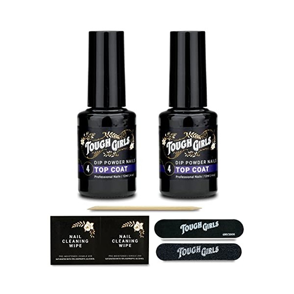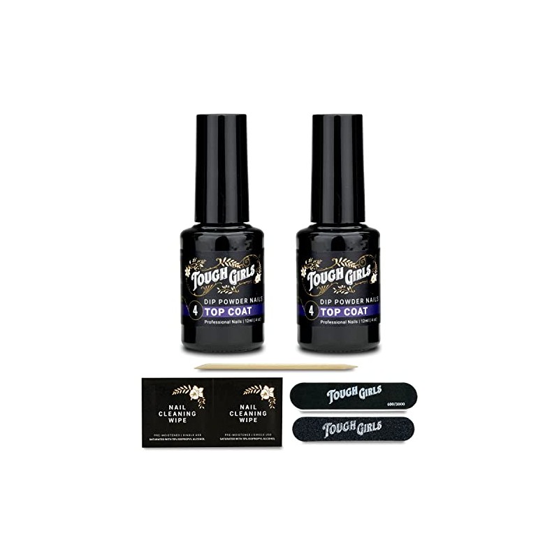 - TOUGH GIRLS PREMIUM DIP POWDER LIQUID KIT INCLUDES: 2 Liquid Top Coat (.4 oz), Cuticle Stick, Nail File, Nail Buffer & 2 Nail Wipes.