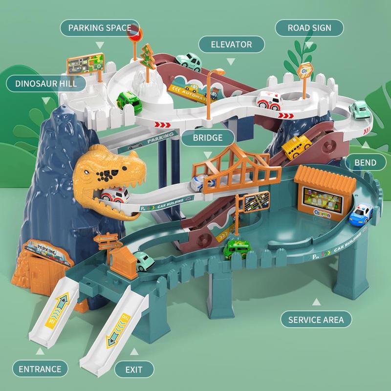 Toys for Mummy Fun Time, 1 Set Electric Dinosaur Design Track Car Toy, Novelty Adventure Racing Toy, Birthday Gift for 4 Years Old Above