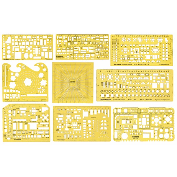 Traceease Lot of 9 Pieces, Architect Templates for Kitchen/Bath/Bed Drafting Tools- Interior Designing Stencils