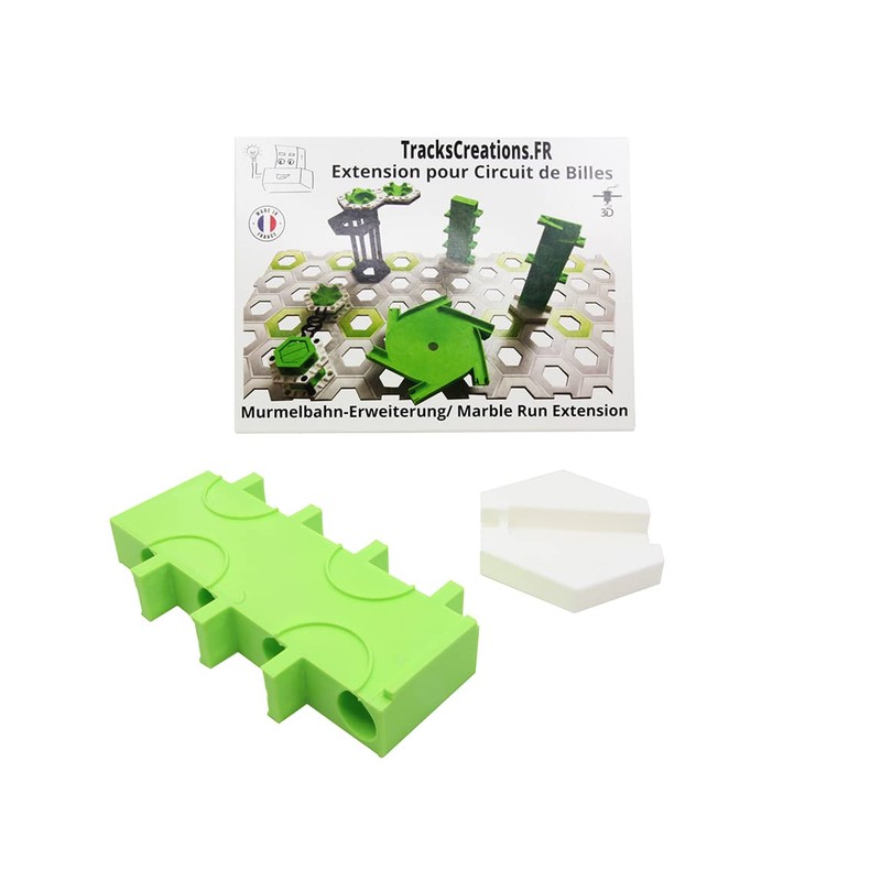 • Content: Includes a green vertical track with four entrances (two on each side) and its white support.