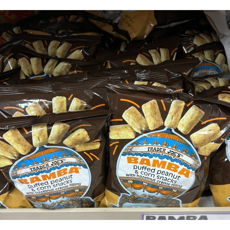 Trader Joe's 3 PACKS BAMBA PUFFED PEANUT & CORN SNACKS DARK CHOCOLATE & HAZELNUT CREME