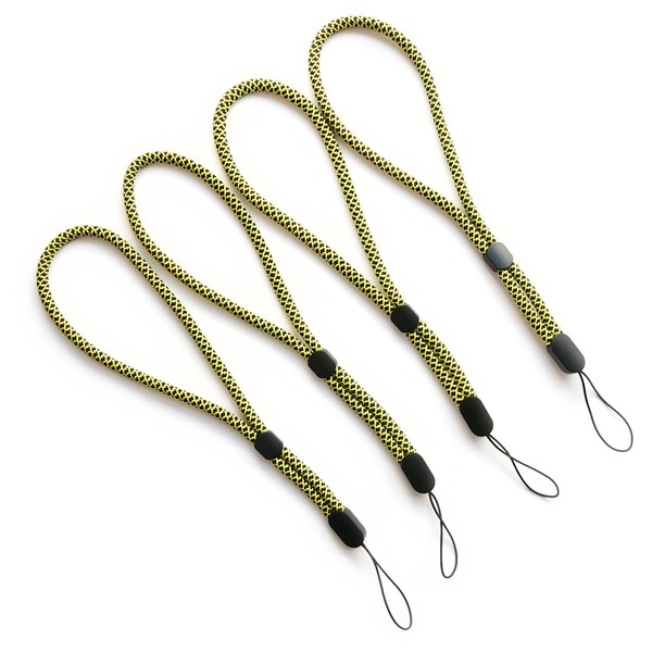 - Box contents: four black and yellow patterned adjustable short wrist lanyards