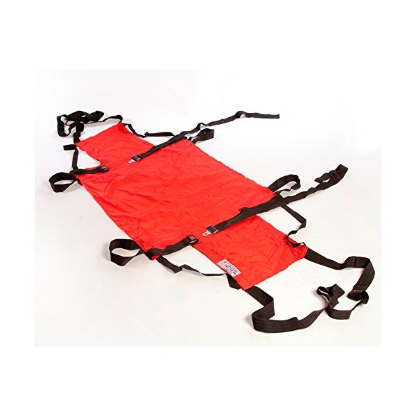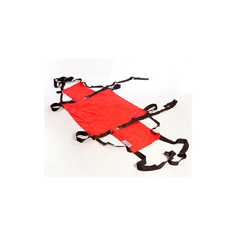 Designed for use in emergencies without requiring that the patient be transferred from bed to a chair, this Evacuation Sheet is fitted beneath an ordinary foam mattress, to which it attaches with elasticated straps in normal use, it lies unobtrusively beneath the mattress but if the user needs quickly to be evacuated, he or she can be held securely in place by means of safety straps and then pulling straps can be released from pockets at either end. In this way, with the patient and mattress both safely inside, it transforms itself into a simple, flexible evacuation sledge. The underside is made from low-friction fabric that will slide easily on stairways, carpet and other surfaces. In the event of soiling the evacuation sheet can easily be removed for laundering.