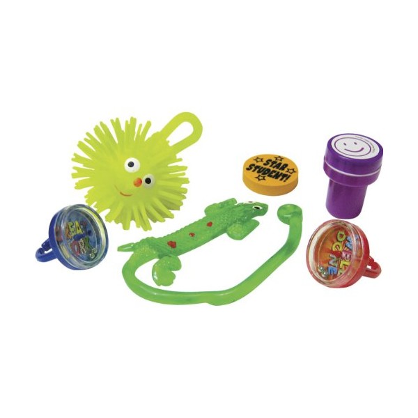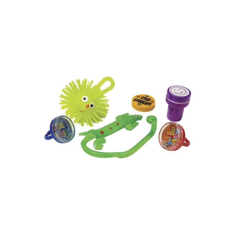 - Includes 4 sticky lizards, 14 rings, 4 erasers, 4 stampers, and 2 smiling face balls