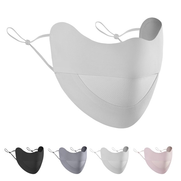 [TRENZADO] UVカット マスク フェイスカバー 日除け 日焼け止め 立体 UVカット マスク 冷感 日焼け 女性用 夏用 接触冷感 耳紐調節可能 洗える 紫外線対策 繰り返し使える スポーツ・自転車・通勤用 フェイス UVカバー レディース (ライトグレー)