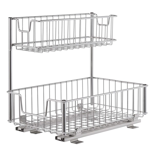 TRINITY Sliding Undersink Organizer with 2 Baskets for Kitchen and Bathroom Cabinet Organization and Storage, 50 Pound Capacity, 11.5” W x 17.75” D x 16” H, 1-Pack