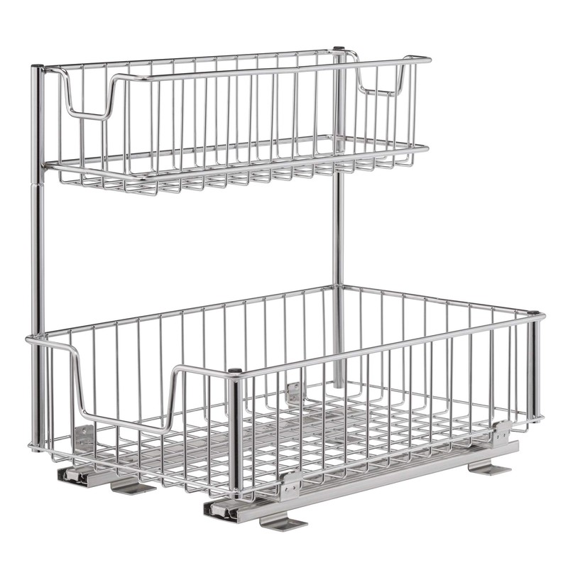 TRINITY's Sliding Under sink Organizer is a great addition to any kitchen, bathroom, or storage area. Add these under your sink or to any 13" or wider cabinet and get instant pull-out access to your items. This organizer will help maximize storage space in areas where your plumbing may create an awkward space, and gain convenience, accessibility, and visibility to all your items. One pair of slides is included and all hardware is provided for mounting under your sink, in a cabinet, or on a wire shelf.