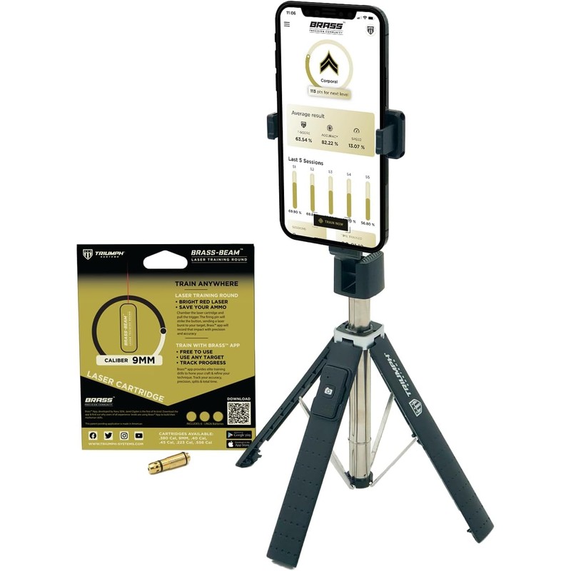 Triumph Systems Brass Dry Fire Training Phone Stand & Dry Fire Laser, 9mm