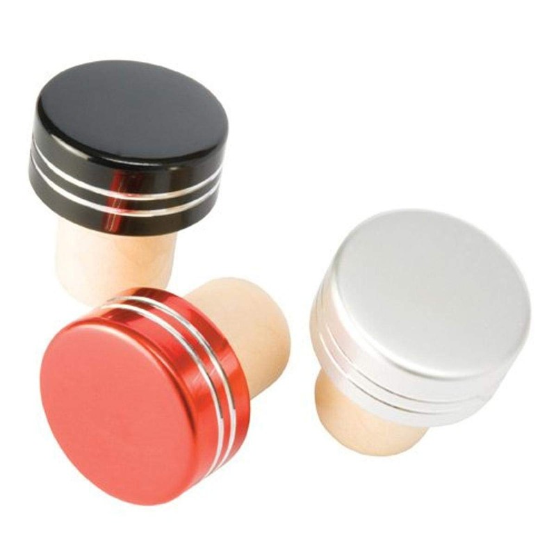 True Fabrications Metallic Bottle Stopper, Black/Red/Silver, 1.5"