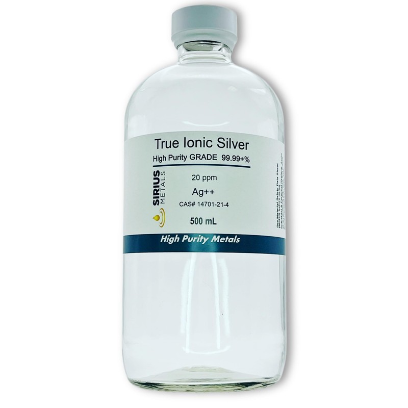 True Free Ionic Silver - 20 ppm: 500mL in Clear Glass Bottle