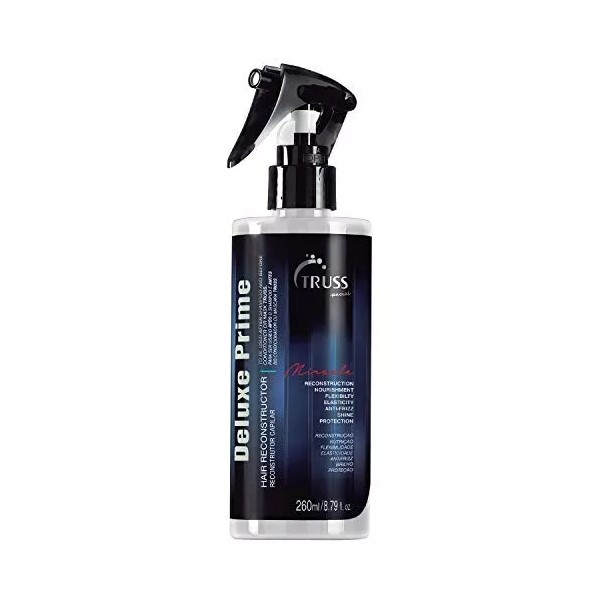 TRUSS Deluxe Prime Miracle Treatment is a highly versatile protein infused spray that restores, and revitalizes even the most fragile, damaged and chemically treated hair. This product is also an excellent detangler, protecting the hair from breakage and leaving hair soft and silky. Prime Deluxe can be used as a treatment (after the shampoo and before the conditioner) as a deep conditioning treatment or a leave-in conditioner applied to damp hair.