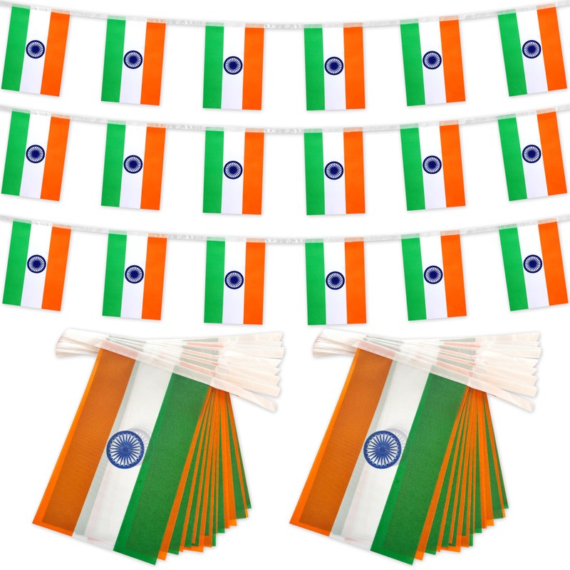 TSMD 2 Packs India Flag Banner Indian Flags String Small Mini Hanging Flags Decorations,60 Feet 40 Flags