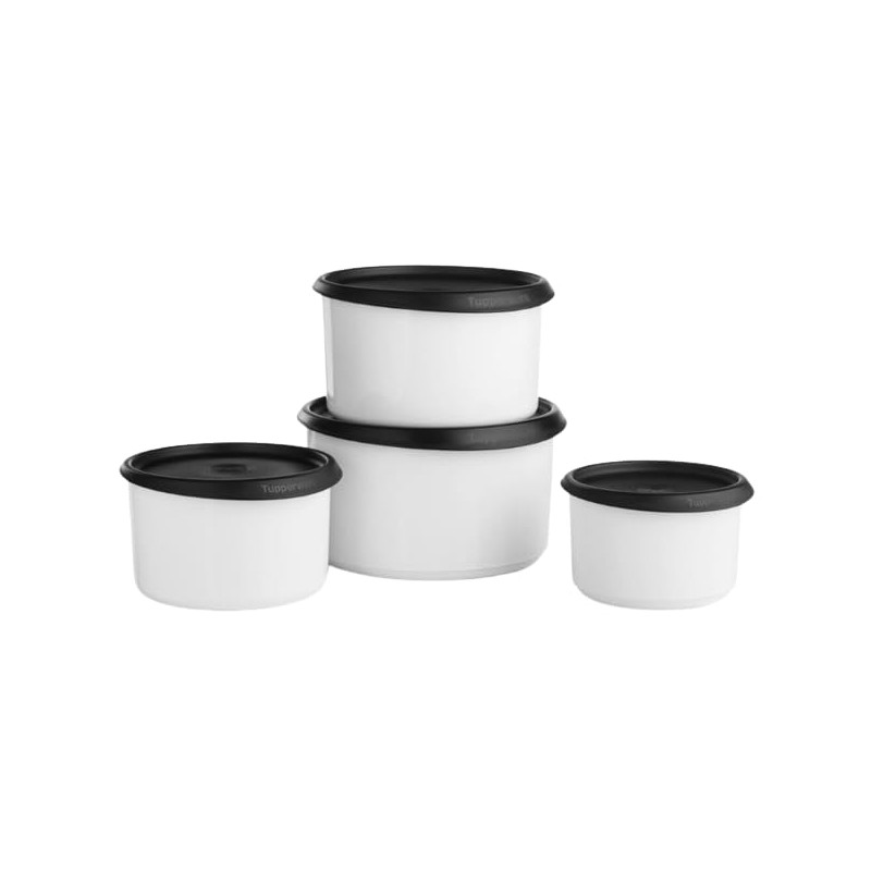 - Tupperware One Touch Topper Stacking Canister Set of 4 Black Seal.