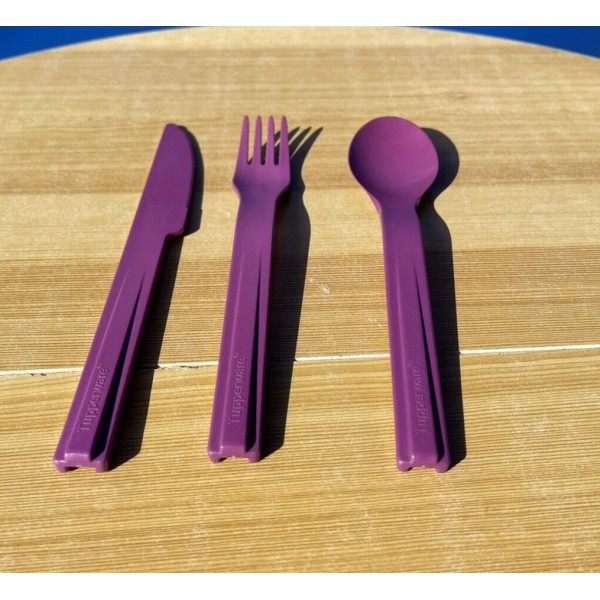 Tupperware Snap-Together Utensils Fork Knife Spoon Purple New