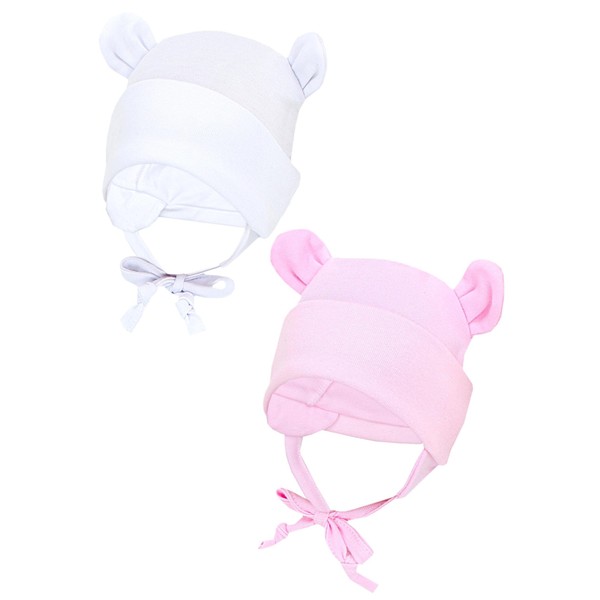 - Cute hat for newborns with ear protection and ties in an attractive pack of 2 - for girls and boys