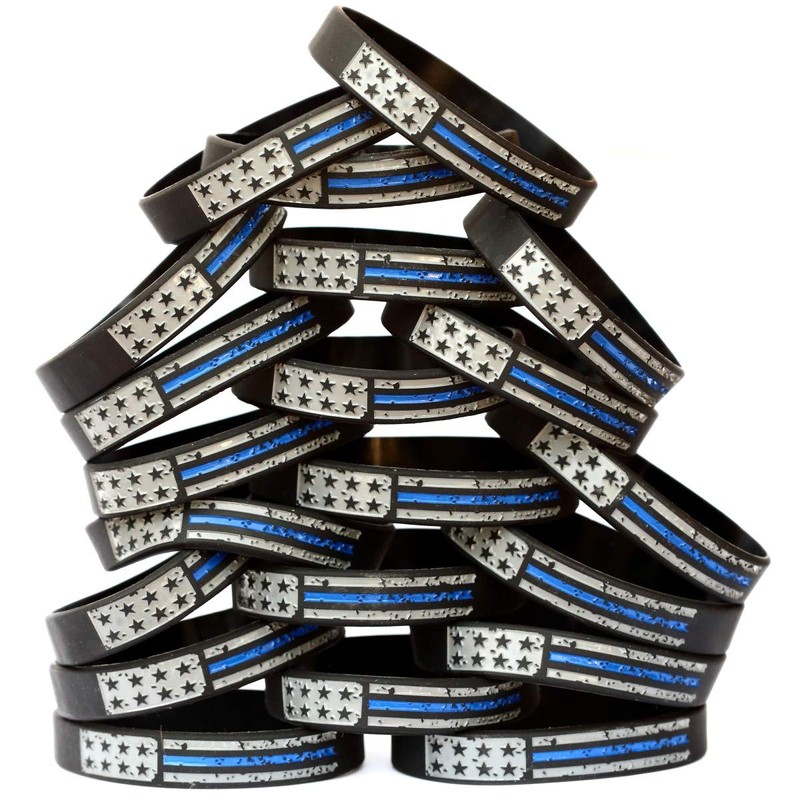 • Worn distressed blue line USA flag Wristbands