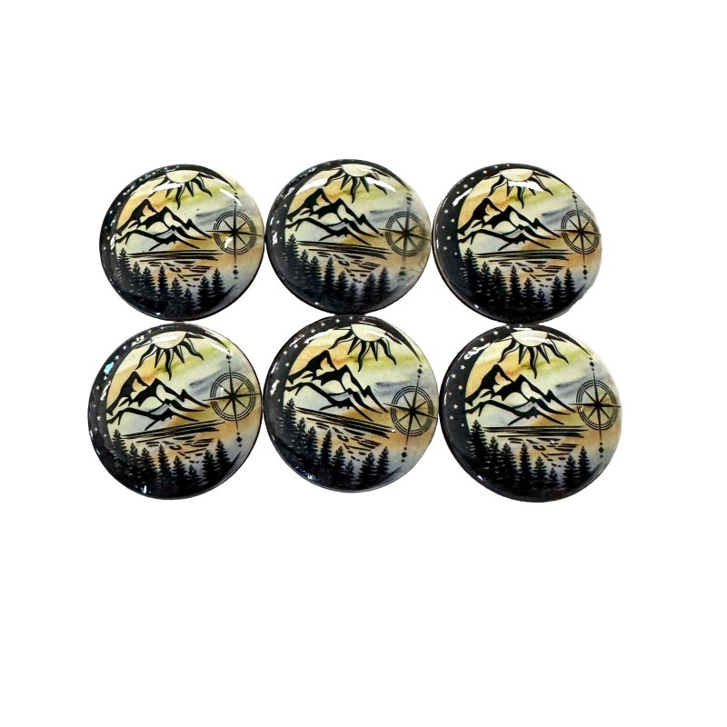 These wooden knobs are 1.5" wide and high quality digital images are printed directly onto the wood knob with archival quality ink and the knob is Sealed with a triple coat gloss finish so these knobs are durable enough for everyday use on your cabinets or furniture. Mounting screws included, these knobs feature a brass insert to ensure a secure fit when attaching the enclosed screws.