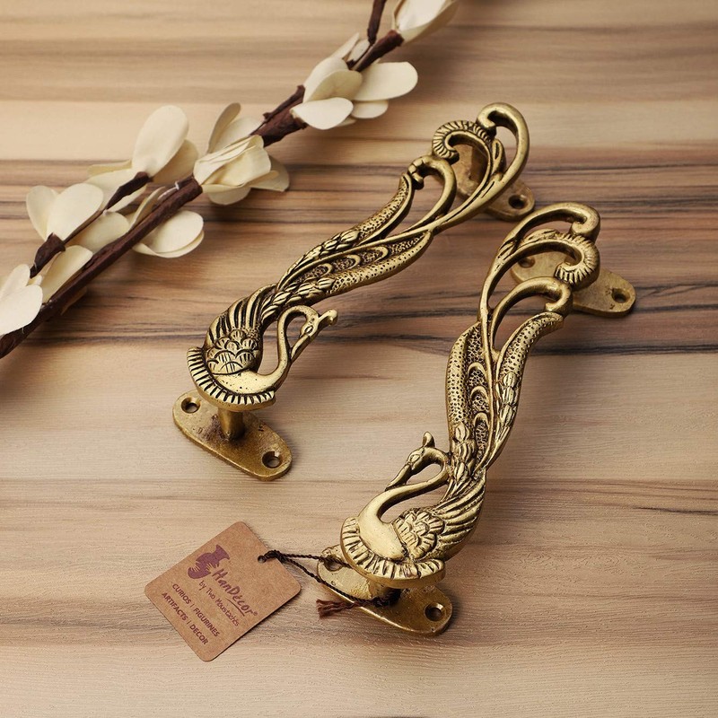 - Package Contains: 2 Brass Designer Peacock Door Handles along with standard fixing screws