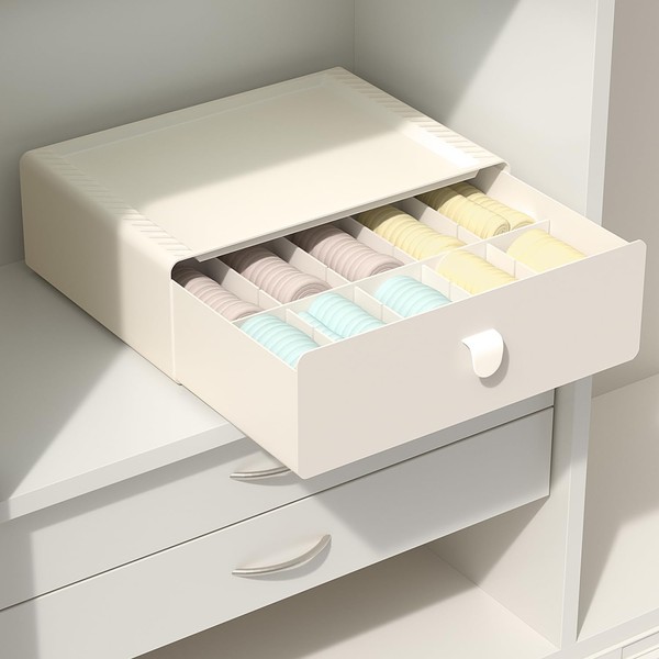 Tynulox Underwear Organizer Drawer, 10 Cells Plastic Panties Drawer, Stackable Closet Organizer, Storage Box for Bras, Socks, Snacks, Beige