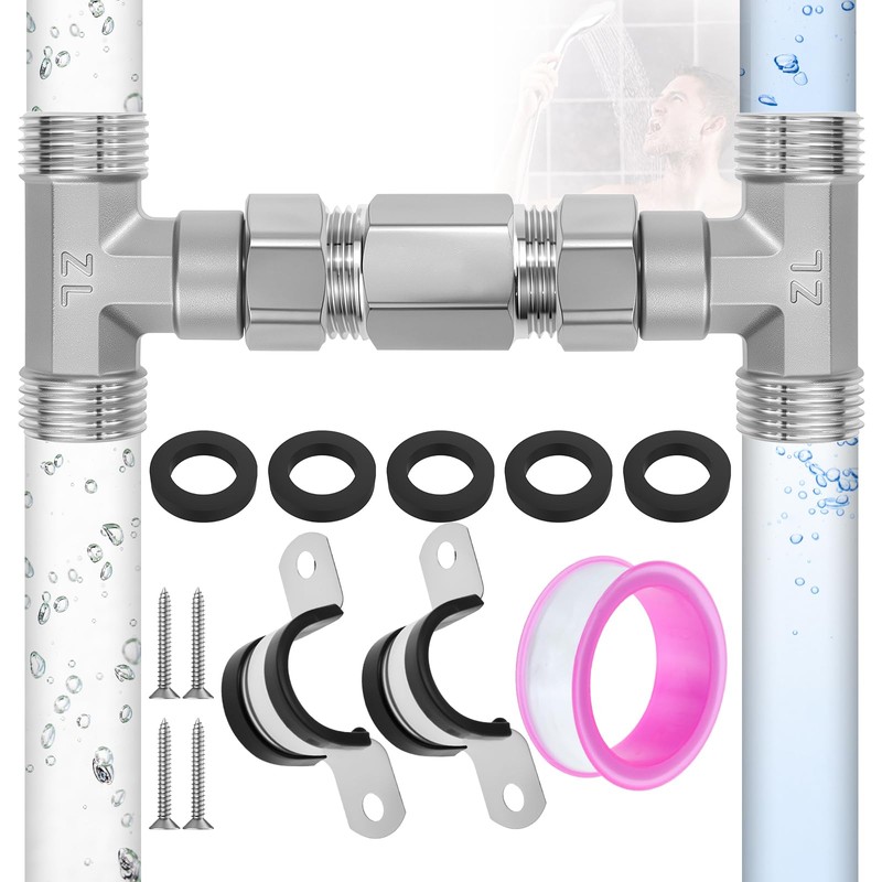- ๐๐๐๐ค๐๐ ๐ ๐๐จ๐ง๐ญ๐๐ง๐ญ๐ฌ: Includes 1pcs bypass valve, 2pcs 1/2inch connectors, 2pcs rubber clamps, 1pcs tape. This all-in-one kit comes with everything you need for a hassle-free installation