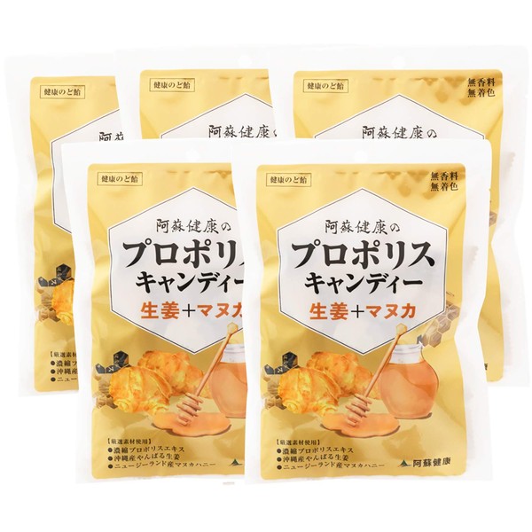 阿蘇健康 プロポリス キャンディー (生姜 + UMF15 マヌカ) 80g x 5袋 セット 【森川健康堂の通販専売品】