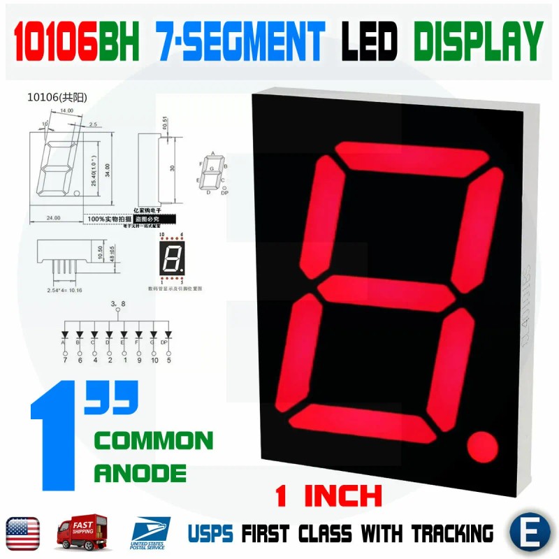 1 x 1 Inch 7-Segment Red LED Display Common Anode Large 10106BH Digital Tube