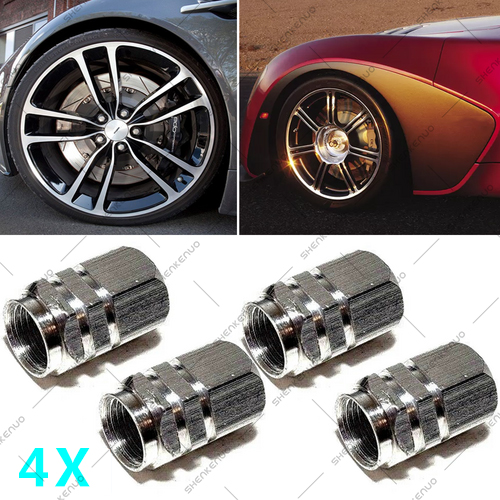 (4) Metal Chrome Tire/Wheel Air Pressure Stem Valve Caps for Car-Truck Hot Rod