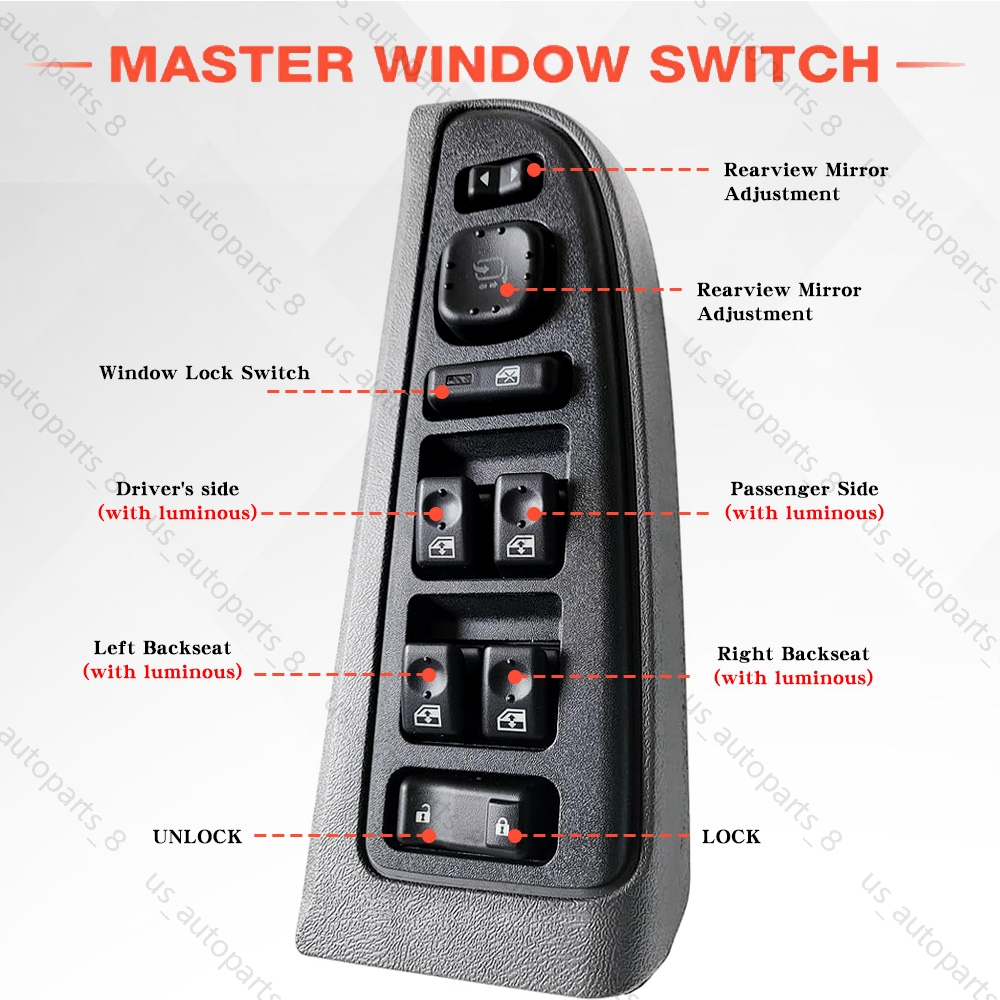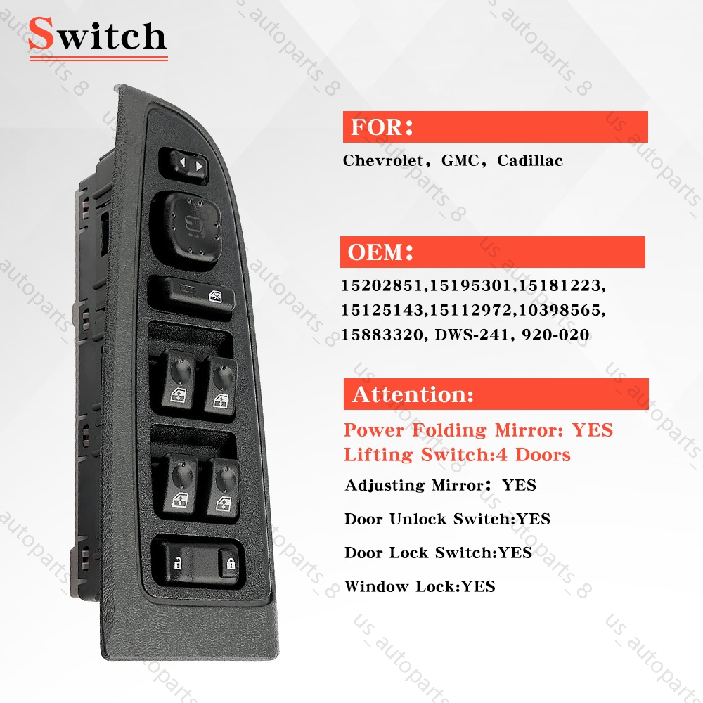 Unbranded for 2003-2006 Chevy Silverado GMC Driver Left Master Power Window Control Switch