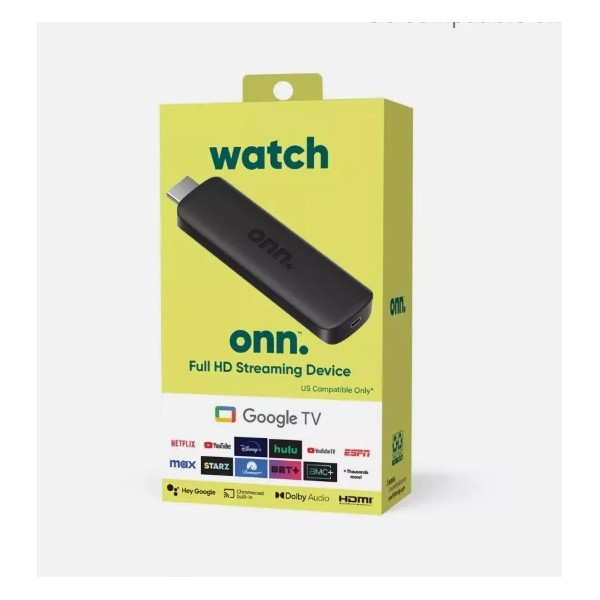 The onn. Google TV Full HD Streaming Device transforms any compatible TV into a smart entertainment hub. Powered by Google TV, it brings together your favorite streaming apps, live TV, and personalized recommendations in one easy-to-use interface. Compact and simple to set up, it delivers smooth 1080p streaming and voice control via Google Assistant.