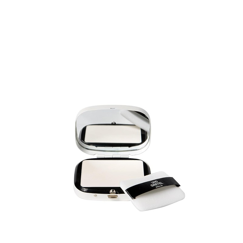 - In der Dose ist das Puder schön weiß, dabei ist er auf der Haut ganz transparent und wirkt wie ein mattierender Weichzeichner für die Gesichtszüge.