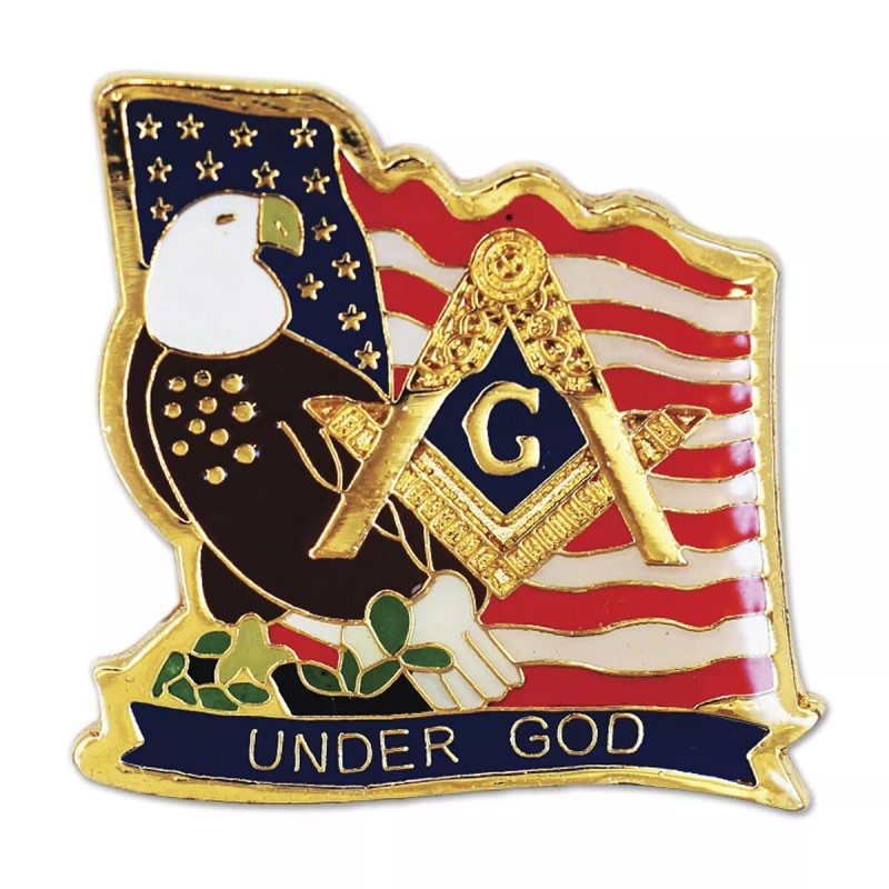 Under God Square & Compass American Flag Eagle Masonic Lapel Pin