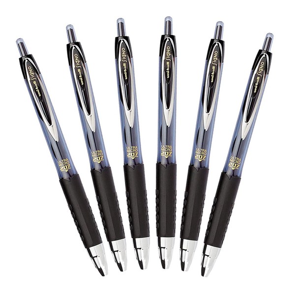 Uni-Ball Signo 207 Retractable Gel Pen, 0.38mm Ultra-Micro Point, Black, Pack of 6