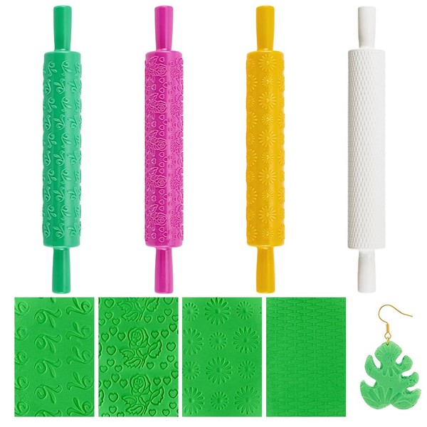UNICRAFTALE 4 Pieces 4 Colors Polymer Clay Tool Leather Texture Roll Plastic Rolling Pin Polymer Clay Pottery Stamp Modelling Pattern Roll Kit for DIY Handmade Art Supplies Shapes Sculpture