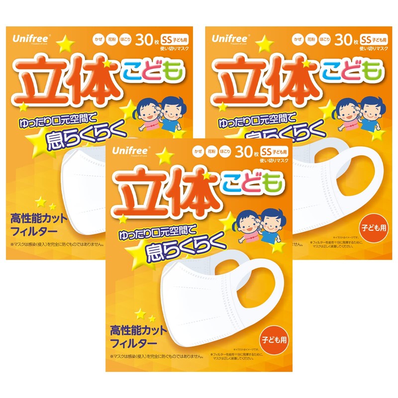 [UNIFREE] 立体マスク こども 不織布マスク 子ども 子供 小さめ マスク ユニフリー (白(90枚))