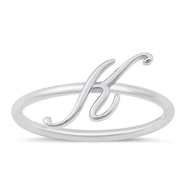 Unique Script "K" Ring New .925 Sterling Silver Initial Letter Band Size 10