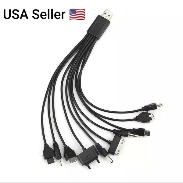 Universal 10 In 1 USB 2.0 Version Black Multi Charger Mobile Phone Cable. Condition is New. Shipped with USPS First Class Package.