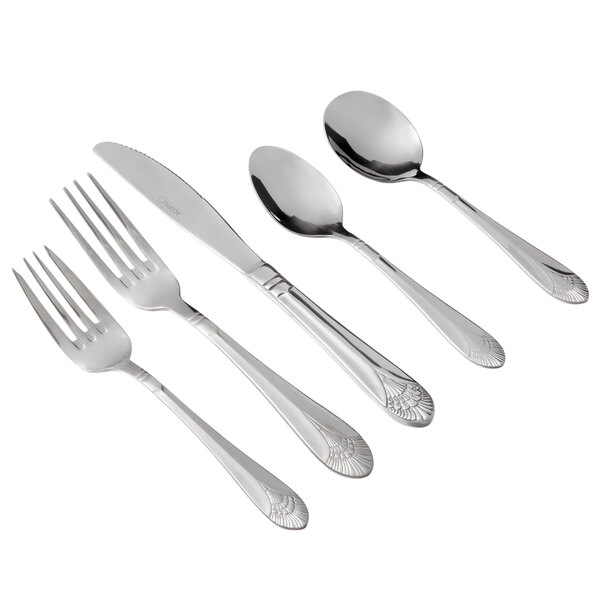 This Acopa Monaca 18/8 stainless steel extra heavy weight flatware set includes dinner forks, salad forks, teaspoons, bouillon spoons, and dinner knives, all with a mirror polished finish for a sophisticated appearance. Use the forks to serve up delicious sides and main dishes and the spoons for soups and desserts. With this set, creating an unforgettable tabletop presentation is always effortless.