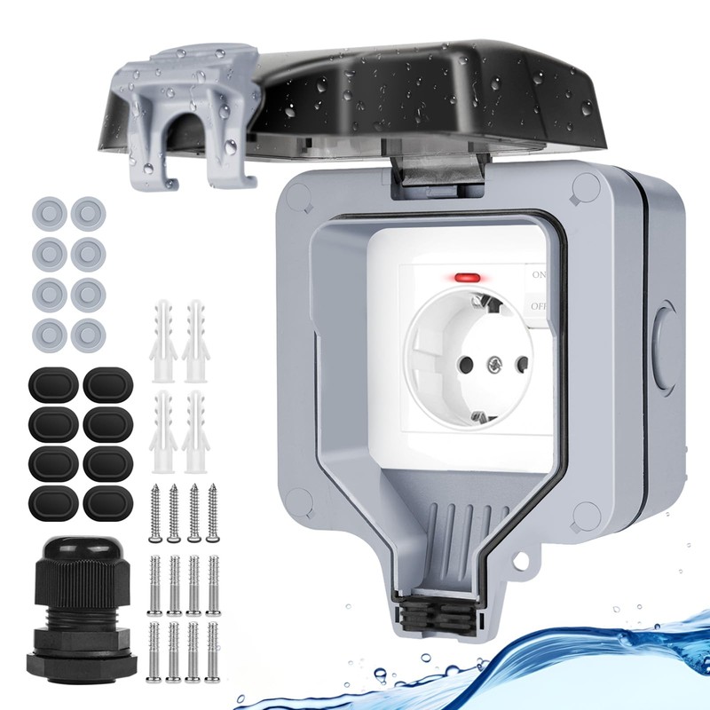 - 【Wide Compatibility & Wide Application】: Large wiring space (height: 30mm) provides enough space for any straight or angled plug available and all the cables needed. As a surface-mounted wall socket, this dustproof waterproof protective contact socket for outdoor use or wet room indoors, e.g. kitchen, bathroom, toilet, laundry chicken, balcony terraces, lawn mower robots, pond pumps, fountain pool raised bed garden, outdoor lighting.