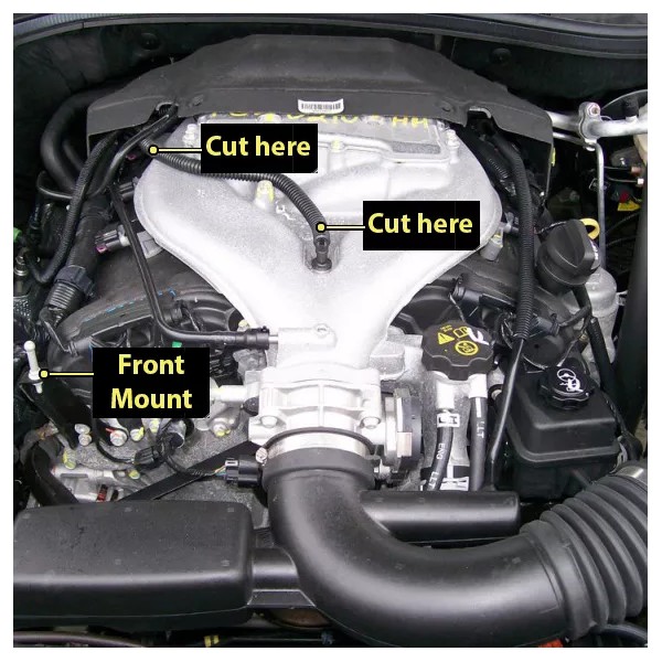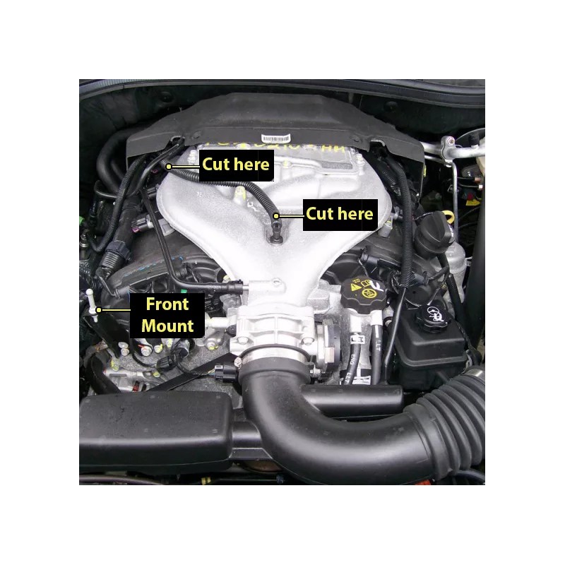 UPRproducts.com 2010-2014 V6 Camaro Catch Can Installation Instructions GM’s V6 is very possibly one of the worst engines for oil ingestion through vacuum lines routed through the intake manifold. This design dumps oil directly into your intake side air charge. Ingesting oil this way creates poor combustion chamber firing and will result in dark plugs and a less responsive / efficient engine operation. Contributing to reduced gas mileage and performance. Worst of all it can create pre-ignition that will lead to premature engine wear and or failure. These pictures here will guide you through a very simple install. The first step is to remove the engine cover from the top of your intake and locate the vacuum line you will be replacing. It’s the main vacuum line located top dead center on the manifold. Follow it back towards the firewall then to the passenger side valve cover connection. You will cut the plastic tube then slip the new hose over the inner plastic tube making sure it slides over at least an inch of the factory tube. You can use water with dish soap to lubricate the hoses. This will make it easier to install and then the ends will dry and they will stay secure. No clamps are needed. Now you will route both hoses from the manifold to your catch can location. Front mount: The catch can mounts on the front engine cover stud. Just remove the stud and place the catch can mount under it then reinstall the stud and bolt it back in place. Optional: The catch can be mounted on the driver’s side using the stud that the stock air box used. Note: For optimal performance and longevity you should drain the catch can with every oil change. The oil and trash collected always get thrown away. Never reuse catch can contents. Discard contents with common sense and you are all done. | |||