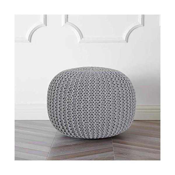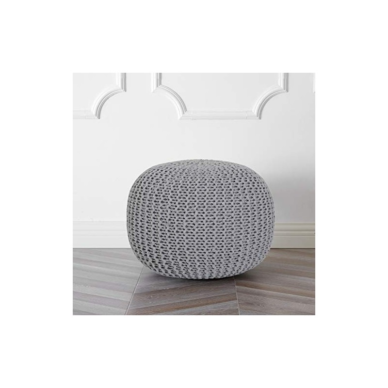 Urban Shop Round Knit Pouf, Light Grey