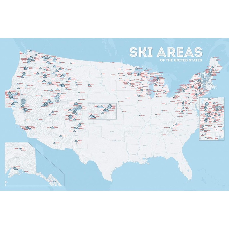 US Ski Resorts Map 24x36 Poster (White & Light Blue) by Best Maps Ever Store