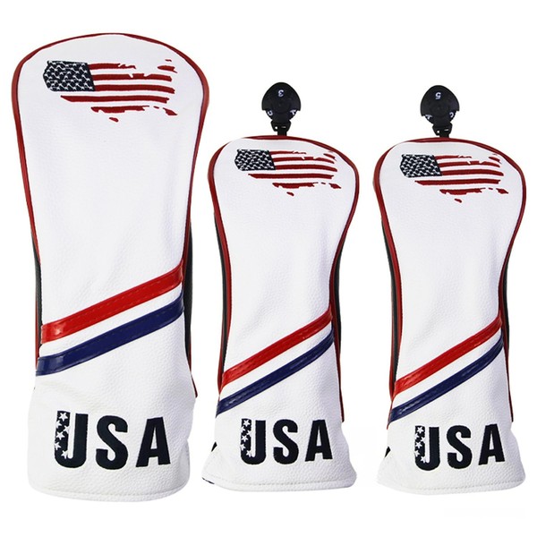 USA Flag Covers Driver 1 3 5 Headcovers 3Pcs White