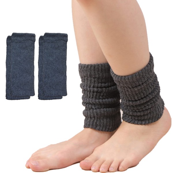 USK STORE 足首ウォーマー ロングタイプ 裏 シルク 二重編み 2足組 リブ編み 保温 絹 レッグウォーマー 遠赤外線 保湿 冷え取り あったか 男女兼用 (チャコール)