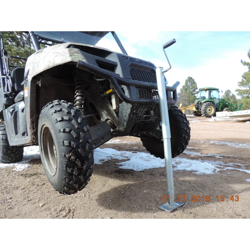 The Hornet High Lift UTV Jack is the perfect jack to carry on your UTV. Quick Lift Jack is designed with a large foot and assures a good foothold. 36". 2,000 lb lift capacity Comes with Crank Handle or simple remove it and use a socket or cordless drill. 8" Long lifting arm. Up to 36" Lift Height Weatherproof Galvanized finish Weighs only 18 lbs. 8" long lift tongue allows plenty of reach This handy universal jack will also lift your ATV or UTV or Trailer for changing tires and wheels. U-5100 Extra Tall 2,000 lb ATV/UTV Jack The Hornet Outdoors Universal Quick Lift Jack was designed for off-road ATV/UTV use and also makes a great jack for your snowmobile or ATV/UTV Trailer. It is lightweight, has a high capacity and long extension range, and is simple to use. Operate with the included crank handle, or remove the handle and use a ratchet or cordless drill. It will easily lift your ATV, UTV, trailer, or other small vehicle. You'll find plenty of other uses for this versatile jack. Change the wheels on a trailer, raise a dock for repairs, change your riding mower blades, and more! Extra Tall:- 2,000 pound lift capacity - 7"-39" extension range via telescoping leg - 20” of Lifting Range at each hole stop on the drop-down Leg - 8" lift tongue - 18 pounds - Only 27" Long when completely contracted. - Weatherproof galvanized finish Note: The U-5100 Jacks lift very tall. Extended them to their highest range could be dangerous and cause serious injury if the the vehicle is not stabilized properly.