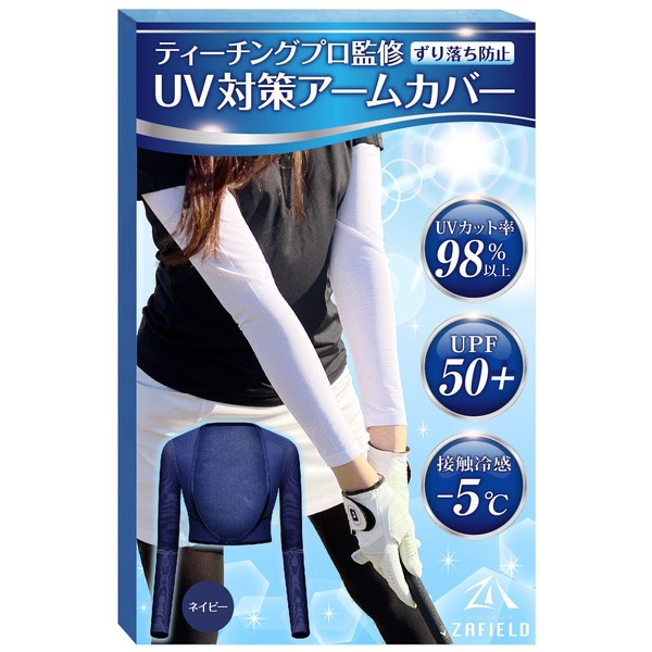 アームカバー レディース 【 ゴルフ ティーチングプロ監修】 UVカット 98% 接触冷感 腕カバー 日焼け対策 スポーツ (ネイビー)
