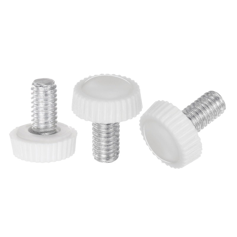 • Knurled Knob Size: Thread Size: M6 (1mm Pitch); Thread Length: 12mm / 0.47"; Round Head Diameter: 14mm / 0.55"; Total Length: 18mm / 0.71"; Color: White